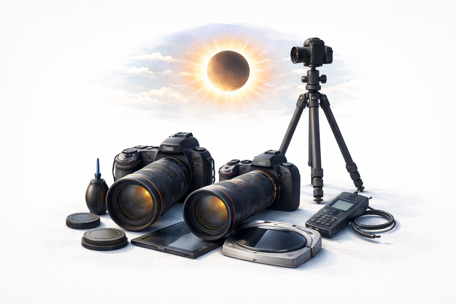 El eclipse de agosto es una oportunidad única, y el equipo importa. No para gastar sin criterio, sino para saber qué es necesario, qué no lo es y por qué. Cámaras, trípodes, filtros solares y accesorios cumplen funciones muy concretas durante un eclipse, y entenderlas es la mejor forma de evitar errores. En la sección de equipo encontrarás páginas específicas dedicadas a cada elemento, explicadas con calma y enfocadas exclusivamente a fotografía y observación de eclipses solares.